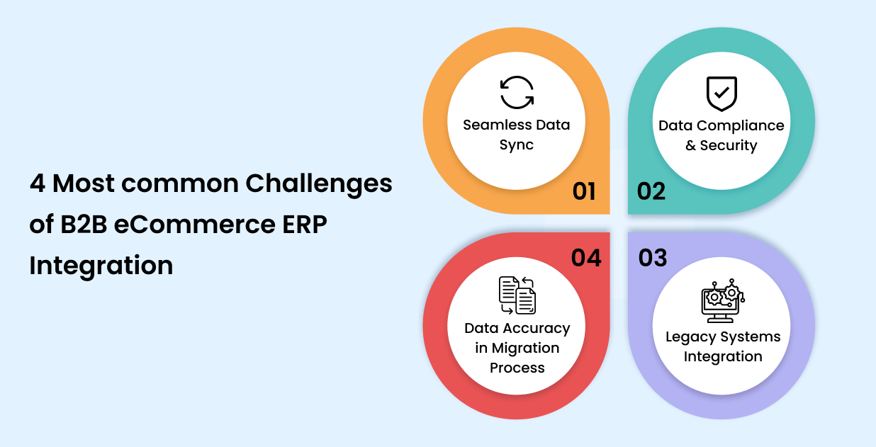 With the help of experienced B2B eCommerce experts, you can identify issues in advance and resolve them to attain optimum output. Below are the most common challenges that you may face during integration.