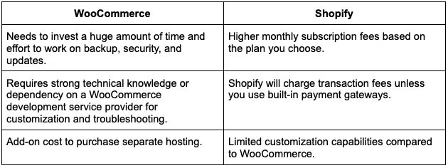 The platforms are different from each other. You need to make a choice based on your requirements. WooCommerce offers flexibility and customization. However, it is expensive to attain extreme customization and difficult to ensure effective and secure management of hosting infrastructure. Many businesses prefer Shopify due to its automatic scaling, security, cost-effectiveness, and managed infrastructure.