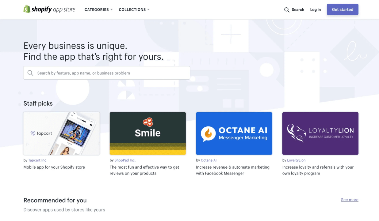 Shopify comes with an App Store that helps online merchants with 8,000+ apps. These apps are highly rated and well-tested. On average, an app costs you $20 per month. The Shopify App Store provides you with various tools to streamline your store management, which consist of: